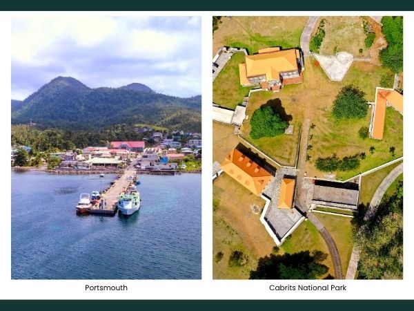 From Roseau, head north along the west coast for about an hour to reach Portsmouth, Dominica’s second-largest town. The road follows the sea, offering spectacular ocean views and plenty of small villages where you can stop for local fruit or snacks. Portsmouth is home to Cabrits National Park, a family-friendly destination.