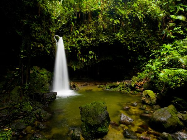 Emerald Pool is another highlight of Morne Trois Pitons National Park. This short and easy trail leads through the rainforest to a small waterfall that cascades into a striking green pool. The setting is enchanting, and many visitors take a refreshing swim in the cool water. The drive to Emerald Pool is about half an hour from Roseau along the Windward Highway.