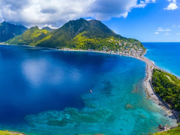 At the southern tip of Dominica lies Scotts Head, a dramatic peninsula where the Caribbean Sea meets the Atlantic Ocean. The views from the top of the headland are breathtaking, showing the rugged coastline, Soufrière Bay, and the endless sea. Scotts Head is also a great spot for snorkelling, diving, and kayaking.